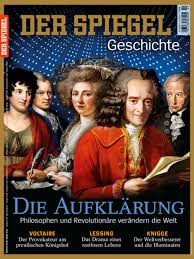 Unter dem Motto »Vernunft für eine bessere Welt« widmet sich das SPIEGEL Geschichte-Heft den Denkern. So werden David Hume, der Kupferstecher Daniel Chodowiecki, Jean Jacques Rousseau oder die Frauenrechtlerin Olympe de Gouges näher vorgestellt. Aber auch der Seefahrer und Entdecker James Cook,, der die Erde auf seinen Expeditionen umsegelte in den Mittelpunkt einzelner Artikel gestellt. Aber auch die Rolle von einzelnen Magazinen und Zeitungen, die den Menschen zum selbstdenkenden Wesen heranziehen wollten und deren Bekämpfung durch die Kirchen werden thematisiert.